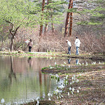 尾瀬の入り口、桧枝岐温泉の尾瀬ミニ公園には もう水芭蕉が咲き始めていました。